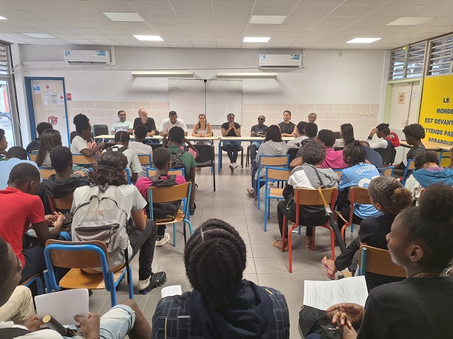 Je tiens à remercier les quatre sportifs d’avoir accepté l’invitation des enseignants et d’avoir été présents au lycée avec nos élèves des voies générale et professionnelle pour discuter du thème « Le sport en Guyane ». Ce fut un plaisir de voir les élèves épanouis, notamment pendant la séance "photo" avec ces champions. Leurs interventions ont donné aux jeunes la motivation de réussir tout ce qu’ils entreprennent aujourd’hui et demain. Plusieurs questions ont été posées, mais le temps imparti de 90 minutes n’a pas été suffisant pour aborder l’ensemble de celles préparées en amont par les élèves et les enseignants à destination des sportifs.