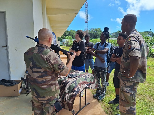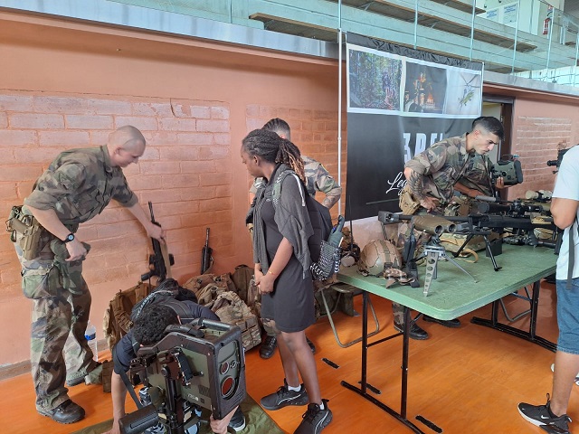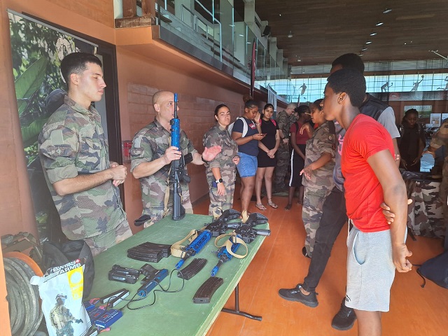 L’évènement s’est déroulé sur une journée articulée dans un premier temps sur la sensibilisation et l’explication des différentes structures militaires responsables de la protection des intérêts stratégiques en Guyane. Qu’il s’agisse de la lutte contre la pêche ou l’orpaillage illégal mais aussi la défense de sites sensibles comme le Centre Spatial Guyanais.