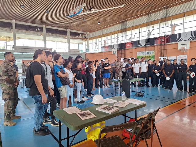Entre les phases de test les élèves ont pu échanger avec des intervenants militaires sur les missions des réservistes, le rôle du RSMA (Régiment du Service Militaire Adapté), la Gendarmerie et l’importance de la Journée Défense et Citoyenneté (JDC).