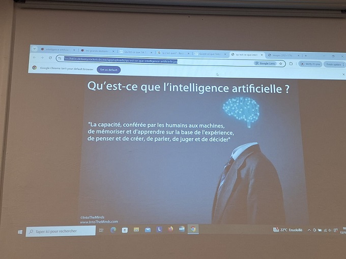 Dans le cadre de la Fête de la Science, un séminaire scientifique autour des multiples facettes de l’intelligence artificielle a été organisé au lycée Georges-Othily (une initiative de Madame Lateb accompagnée de Madame Danglades et Messieurs Pivert et Lafargue).