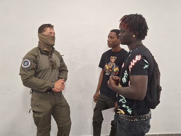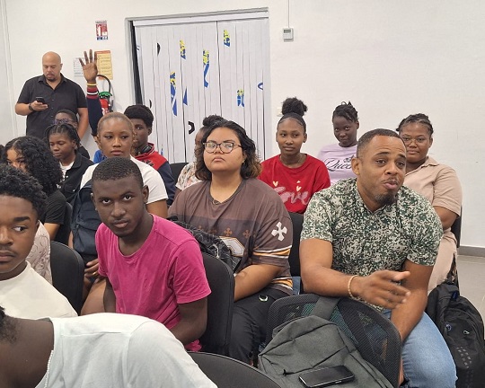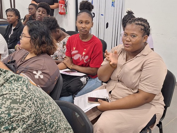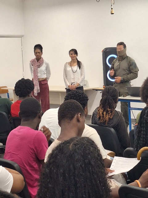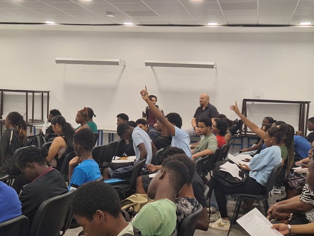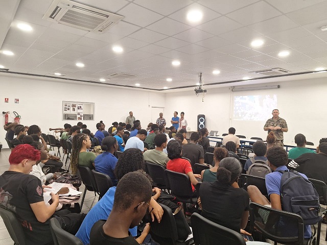 Ensuite, nous avons eu une intervention de la gendarmerie, avec le GIGN. Nous ne connaissions pas vraiment leurs missions en Guyane. Nous avons découvert leur travail grâce à une présentation. Il nous a expliqué comment se passe le recrutement et leurs interventions, par exemple en forêt contre l’orpaillage illégal. Nous avons appris qu’il faut être en très bonne condition physique pour intégrer le GIGN. Nous avons posé beaucoup de questions, mais nous n’avons pas eu le temps de tout demander. C’était une séance très intéressante, et nous étions tous concentrés, ça nous a plu.
